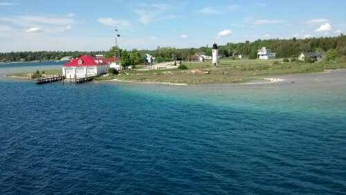 The mouth of the river from Houghton Falls empties into Lake Superior.