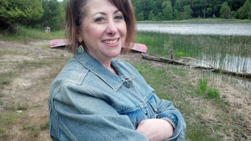 Marjorie at Houghton Falls park, on the mainland south of Bayfield.