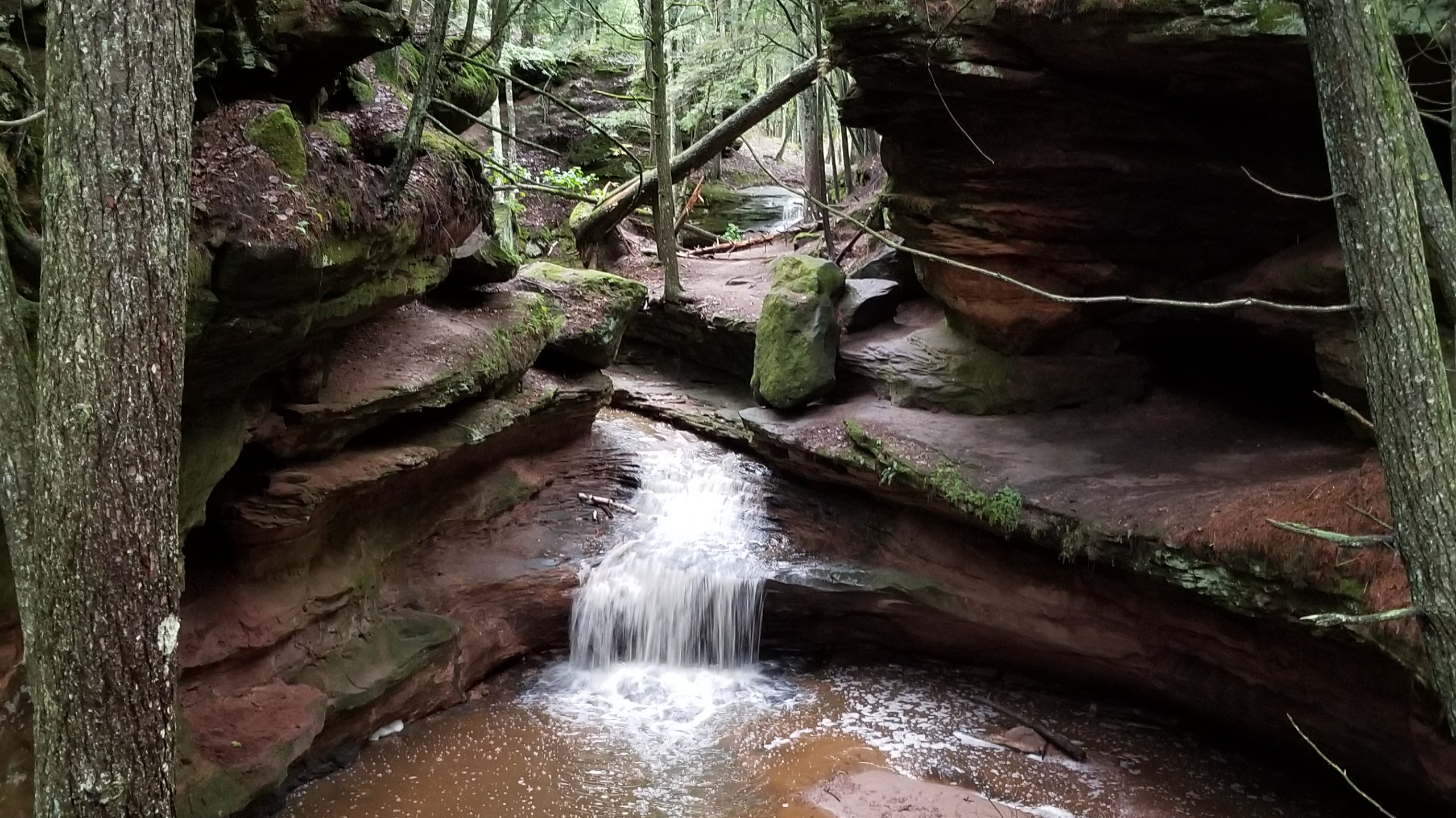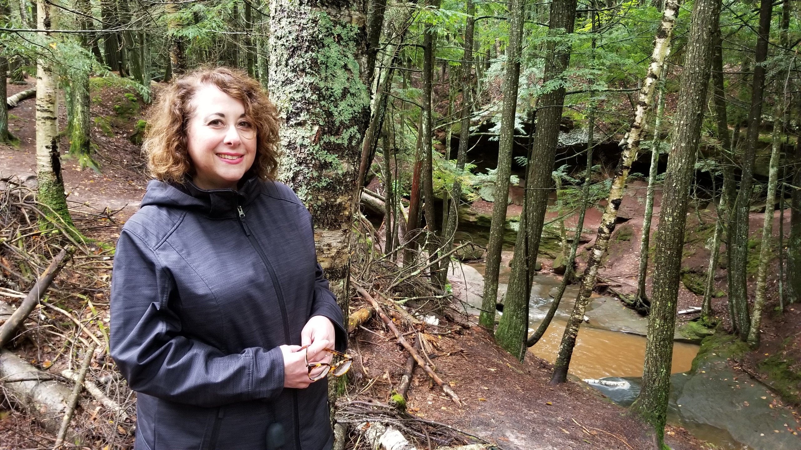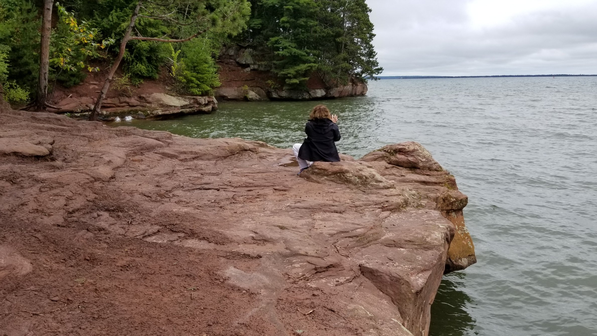 Marjorie at Houghton Falls park, on the mainland south of Bayfield.