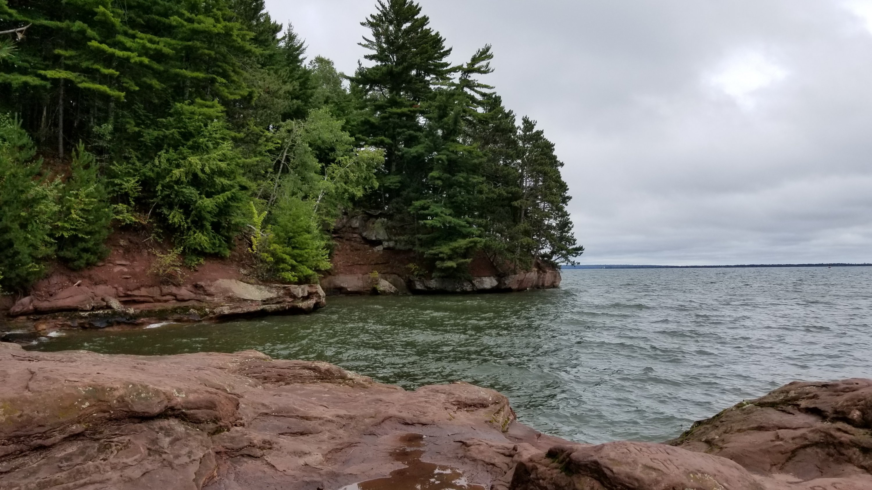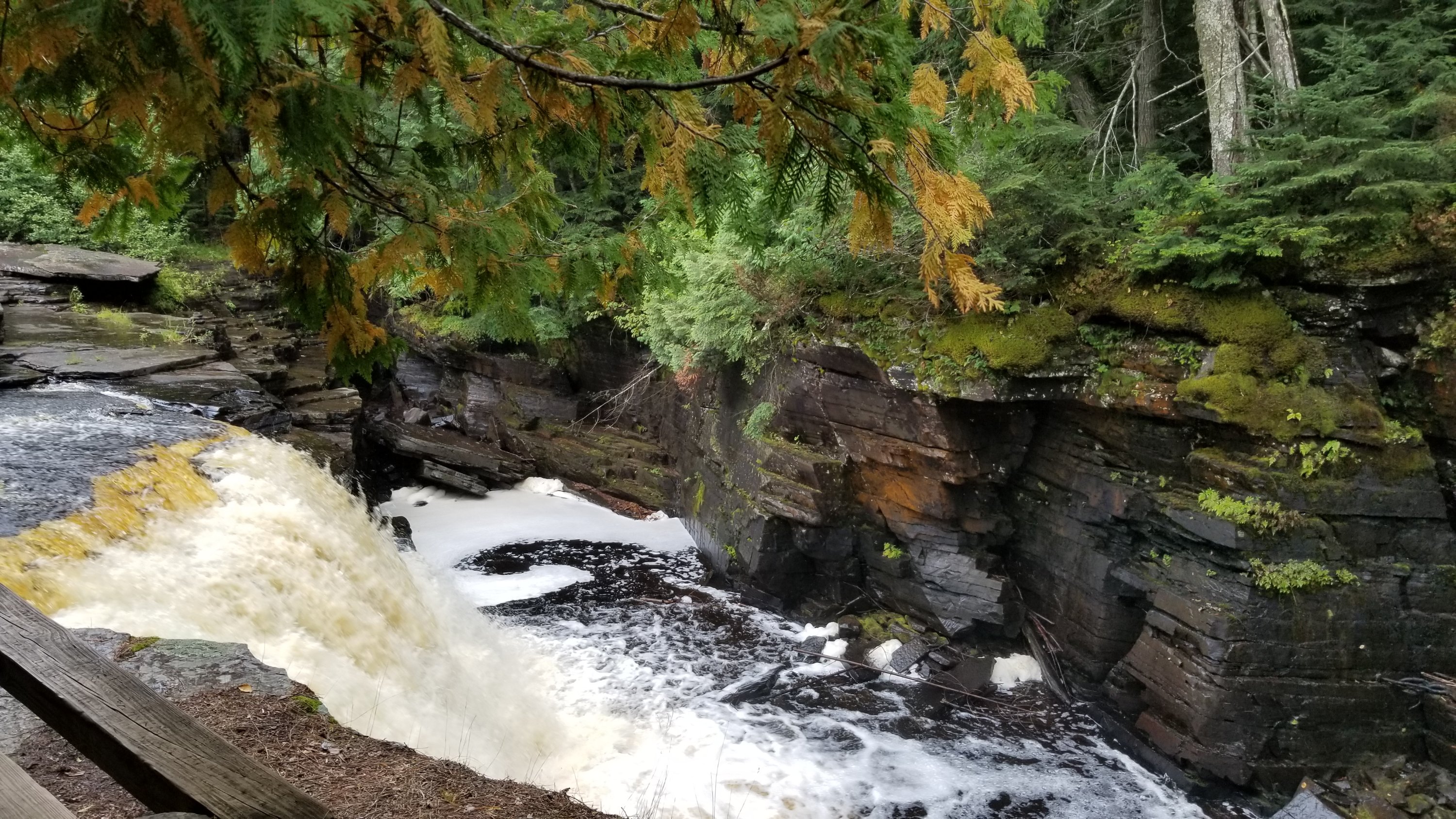 The mouth of the river from Houghton Falls empties into Lake Superior.
